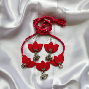 Scarlet Lotus: Handmade Necklace & Earrings Set